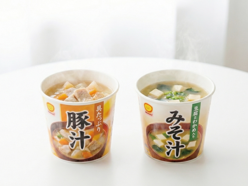 もし惣菜を選ぶのが面倒なら、カップの「味噌汁」や「豚汁」をプラスしてください。