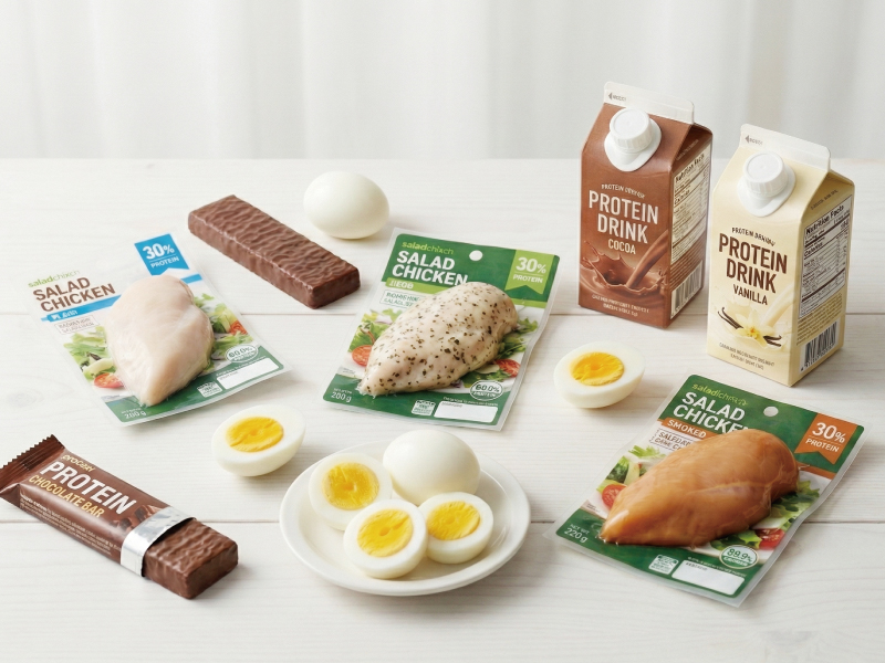 コンビニで手軽にタンパク質を摂ろうとすると、サラダチキンやゆで卵、プロテインバーなどが候補に挙がりますが、毎日続くと飽きてしまったり、添加物や塩分、カロリーが意外と高かったりすることも。