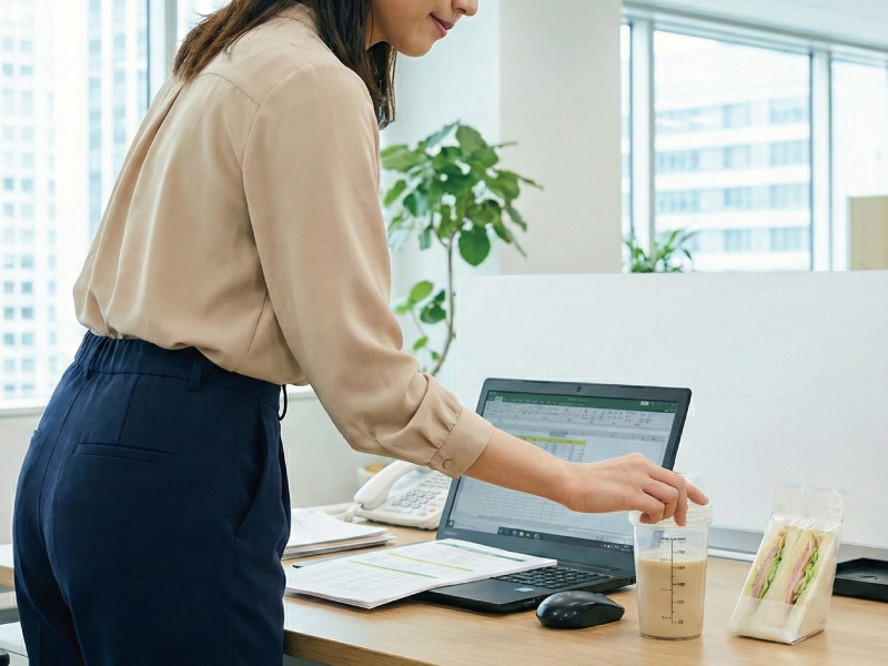 「炭水化物を控えめにして、プロテインでタンパク質を満たす」というランチスタイルに切り替えると、血糖値の乱高下が防げるため、食後の眠気が起きにくく、午後の仕事のパフォーマンスが安定するという嬉しいメリットも。